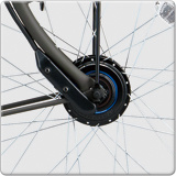 前輪に組み込まれたモーターが、電気の力をダイレクトに伝達、力強い走りを実現しました。