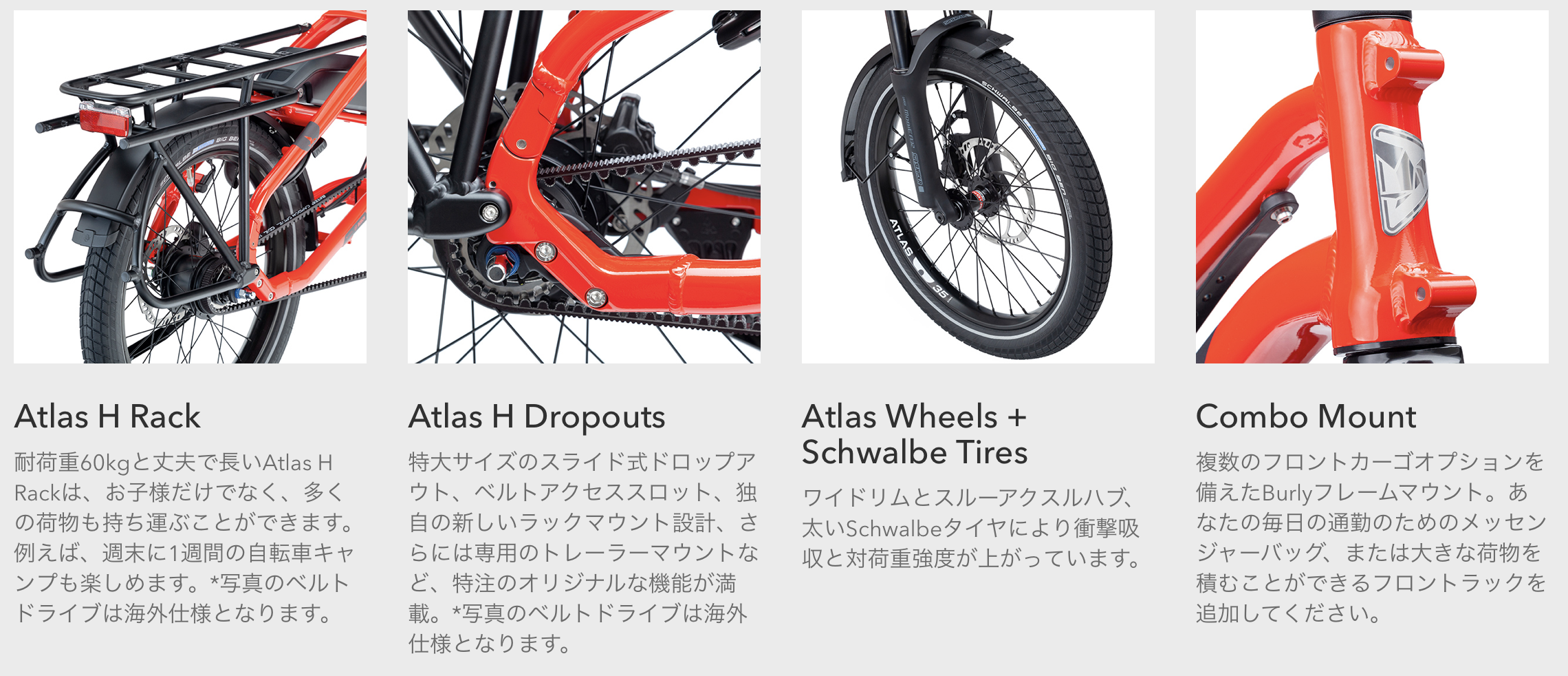 • チャイルドシートに関して、Tern社はThule® Yepp Maxi, Yepp Nexxt Maxi もしくは Bobike® GO Maxi child seatが搭載可能としていますが、日本国内と海外とでは安全基準が異なるためシングルスタンド仕様のHSDにはチャイルドシートの取り付けを推奨しておりません。