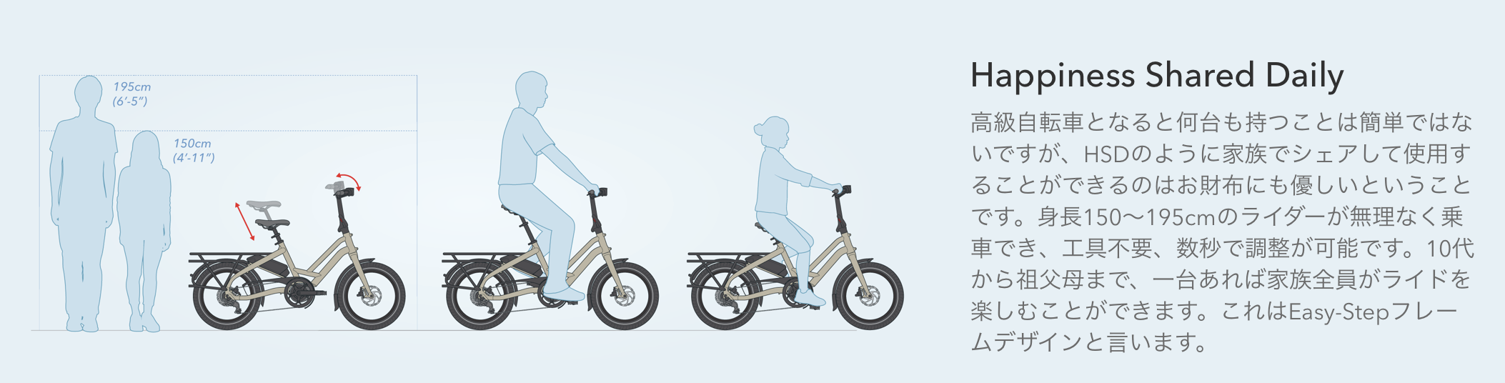 • 1台で150cm〜195cmの方が乗車できシェアが可能