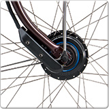 前輪に組み込まれたモーターが、電気の力をダイレクトに伝達、力強い走りを実現しました。