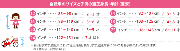 お子様の成長に伴い、自転車のサイズも変わってきます。