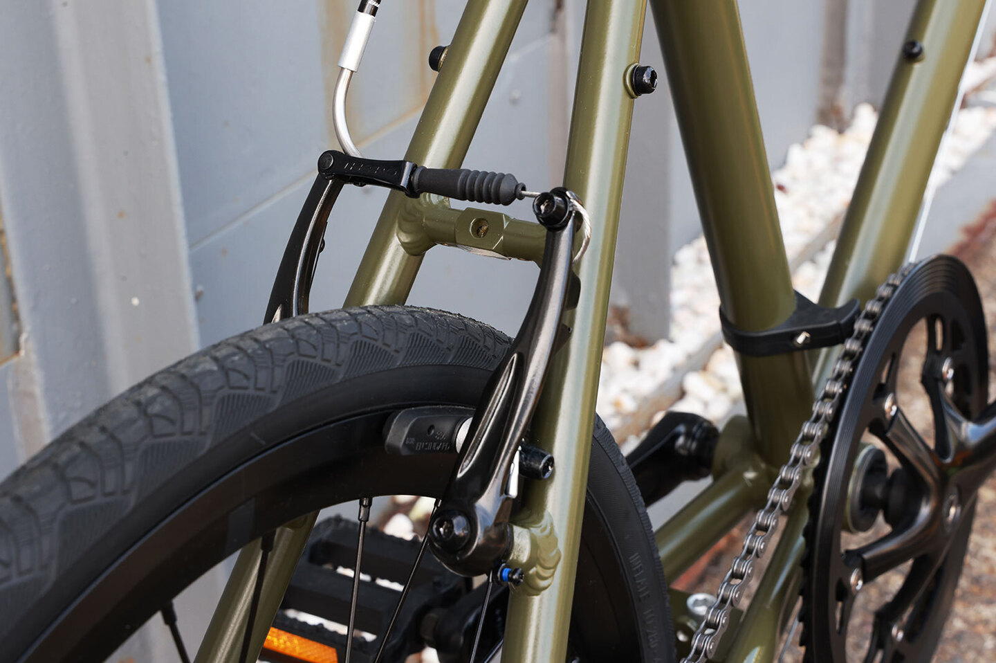 キャリパーブレーキから、よりしっかりと制動力を発揮するVブレーキに変更。泥除け装着への順応性も高まり、普段使いに便利なカスタムが可能に。