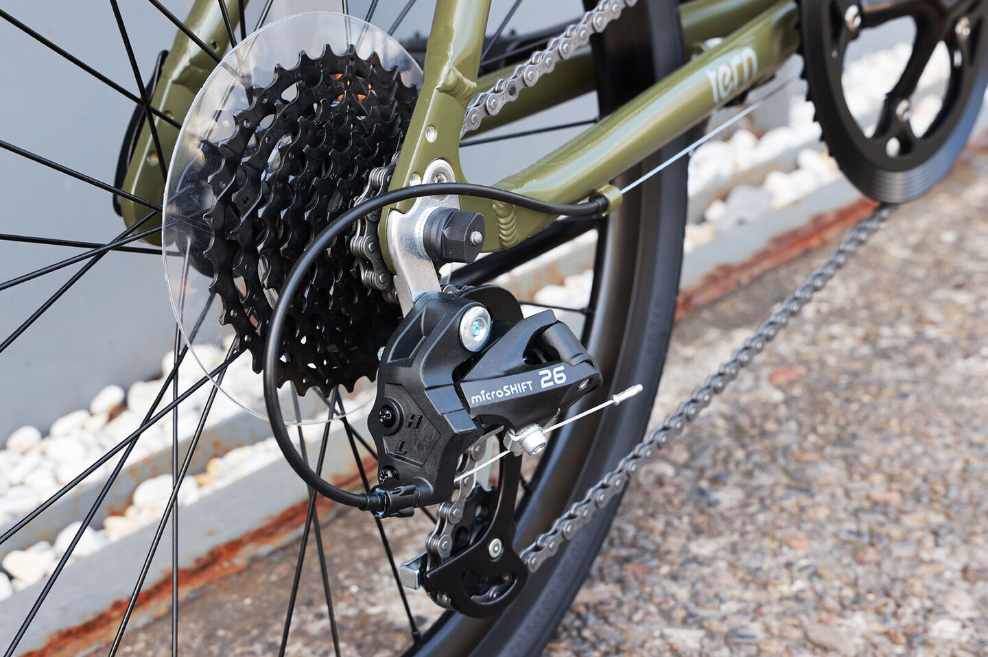 Shimano AltusからMicroshift製に変更され、シフティング操作が親指1本で直感的に行えるように。残り4本の指でしっかりとグリップを握ることで、走行時の安全性もアップ。手の小さめな女性ユーザーでも安心です。