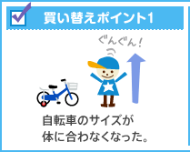 お子様の成長に伴い、自転車のサイズも変わってきます。