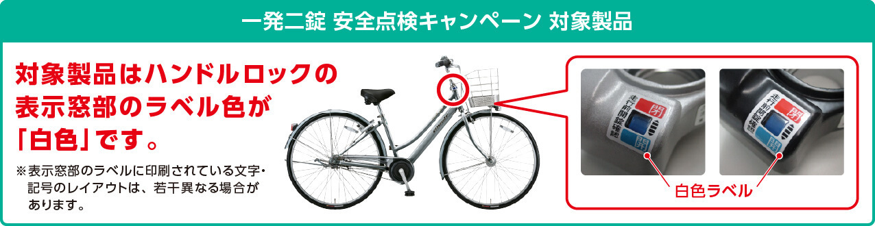 - ※4. 2019年6月24日より実施中の「ハンドルロック(一発二錠)搭載自転車・電動アシスト自転車の無償点検・改修」につきましては(こちら>>)からご覧ください。